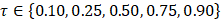 Tau | 0.10 | 0.25 | 0.50 | 0.75 | 0.90 |